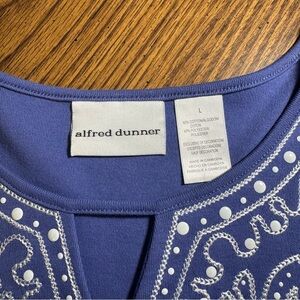 Alfred Dunner purple embellished t-shirt in size L. Very soft feel! Gently loved and in excellent condition with no flaws.