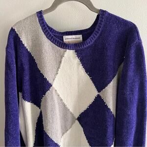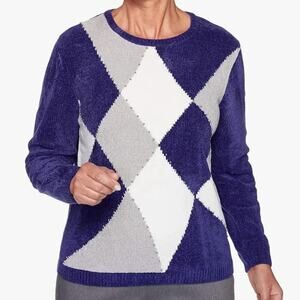 Alfred Dunner Purple and White Diamond Chenille Sweater Size 2X