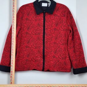 Alfred Dunner Quilted Butterfly Red Zip Up Jacket Size 14