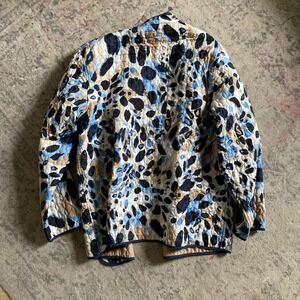 Alfred Dunner Quilted Jacket Womens 16W Abstract Print Blue Beige Coat