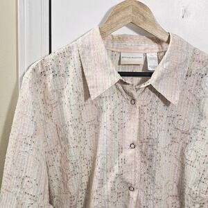 Alfred Dunner Rainbow Paisley Print 3/4 Sleeve Button Up Plus Size 22W Waffle