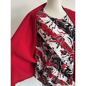 Alfred Dunner Red & Black Floral Rhinestones 2 pc connected top & cardigan M