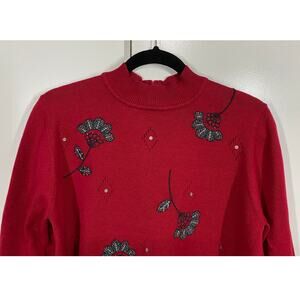 Alfred Dunner Red Embroidered Mock Turtle Neck Long Sleeve Sweater Size Medium