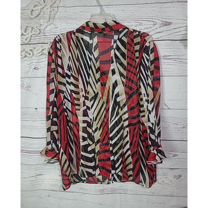 Alfred Dunner Red Striped Semi Sheer Long Sleeve Button Front Top Womans Size 16