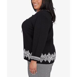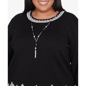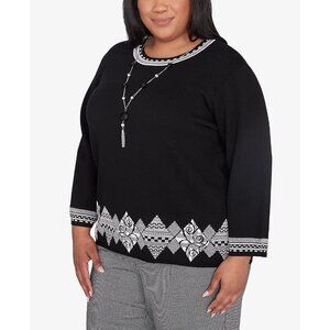 Alfred Dunner Runway Ready Diamond Border Sweater With Necklace 2X
