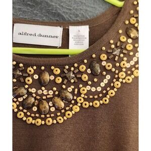 Alfred Dunner Safari Chocolate Brown Wood Beads Embellishments Top Women's L NWT. Cotton Acrylic Blend. Smoke-free home. Check out my other items. I will combine shipping