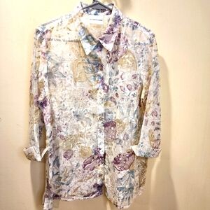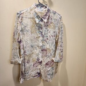 Alfred Dunner See Through Quarter Sleeves Floral button Down shirt size 12