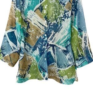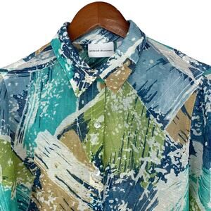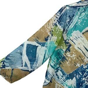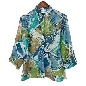 Alfred Dunner Shirt Button Front Colorful Semi Sheer Artsy 3/4 Sleeves Women's 8