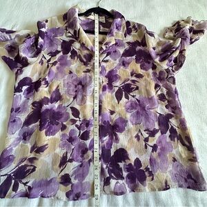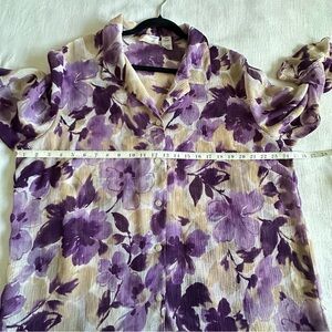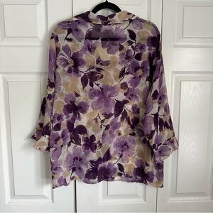 Alfred Dunner Shirt Womens 2XL Purple Beige Floral Sheer Button Up Blouse 20W