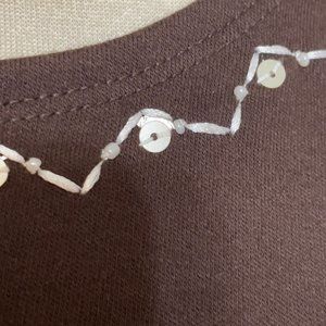 Alfred Dunner Shirt Womens Large Brown Sequin Embellished Crewneck Top Short Sle