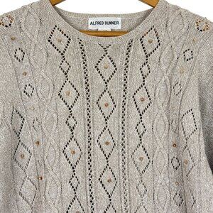 Alfred Dunner Short-Sleeve Knit Sweater Sz Large Beaded Cotton Blend Beige