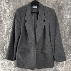 Alfred Dunner Size 10 Worsted Wool Single Button Blazer Jacket Gray Lined