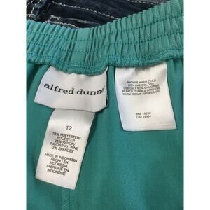 Alfred Dunner size 12 blue green capris gathered waist at the back slip side pockets abalone button details on the hem