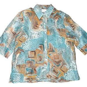 Alfred Dunner Size 14 Women’s Blouse Geometric Print Rayon Blend 3/4 Sleeve