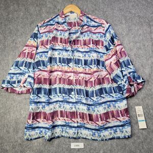 Alfred Dunner Size 20W Top Blouse Button Up Purple Blue Roll Tab Shirt New