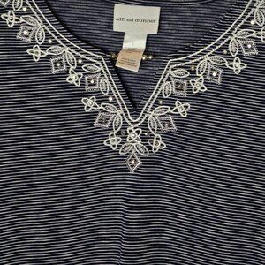 Alfred Dunner Size Large Womens Blue Stripe Embroidered Pullover Top