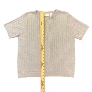Alfred Dunner Size Medium Blouse Silver Metallic Sparkly Short Sleeve Holiday