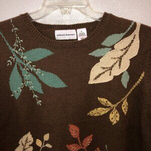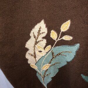 Alfred Dunner Sweater Leaves Beaded Embroidered Brown Grandma Fall