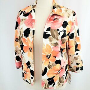 Alfred Dunner Stretch Blazer Size 18 Orange Floral Open Front 3/4-Sleeve Lined