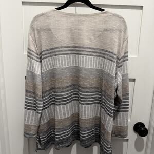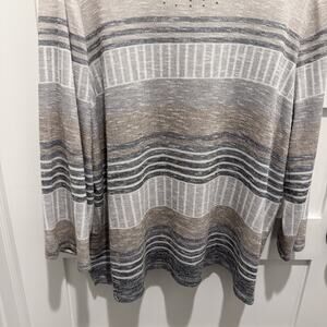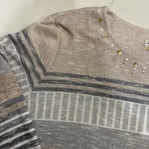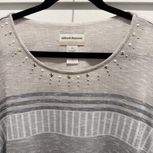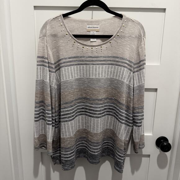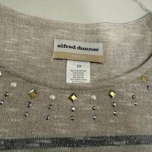 Alfred Dunner Striped 3/4 Sleeve Sequin Neck Line Knit Sweater Womens Plus 2X