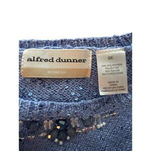 Alfred Dunner's Striped Sequin Sweater in 2X size brings a touch of sparkle to your wardrobe. Made from a blend of polyester and rayon, this soft, shiny sweater is perfect for a fabulous Christmas party.