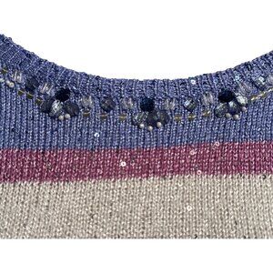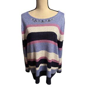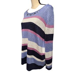 Alfred Dunner Striped Sequin Sweater Soft 3/4 Sleeve Soft Shiny Size 2X