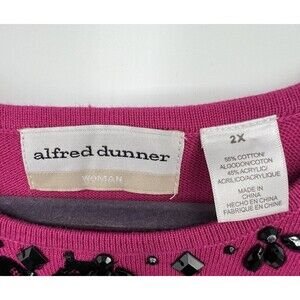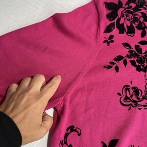 Alfred Dunner Sweater Oscar Night Fuchsia Pink Size 2X Black Velvet Floral Patter on the front with Jewel Neckline