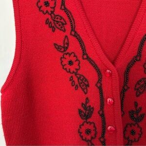 Alfred Dunner Sweater Vest Holiday Red with Black Beads Acrylic & Wool Size PL