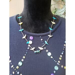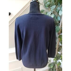 Alfred Dunner Sweater Women Small Navy Knit Beaded Sequin Long Sleeve Round Neck