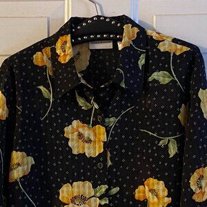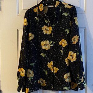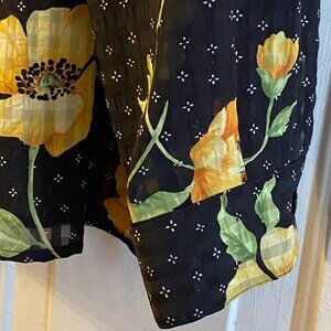 Alfred Dunner Sz 18 (XL) Blouse Button Up Short Sleeve Black Yellow Poppies
