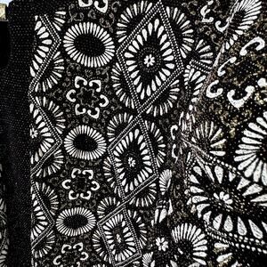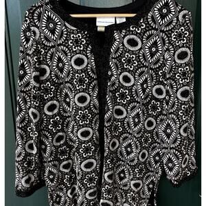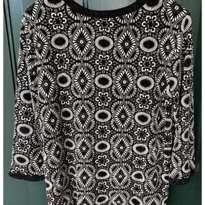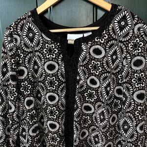 Alfred Dunner Sz L Metallic Gold Black & White Tile Print Sweater Event Dressy