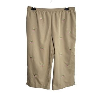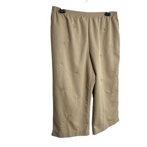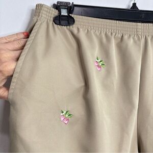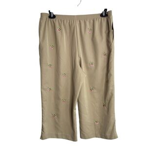 Alfred Dunner Tan Capris Pants Womens 16P Embroidered Strawberry Design Elastic Waist with Hip Pockets