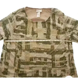 Alfred Dunner Tan and Brown 3/4 Sleeve Mesh Top With Sequin Detail Size …