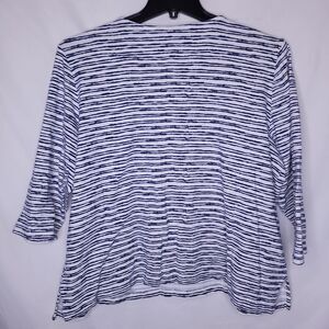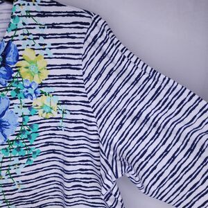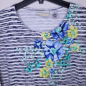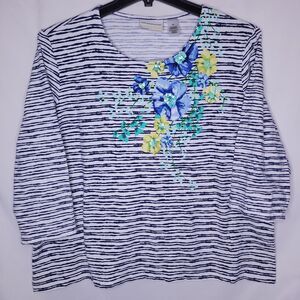 Alfred Dunner Top 2X Striped Floral White, Blue