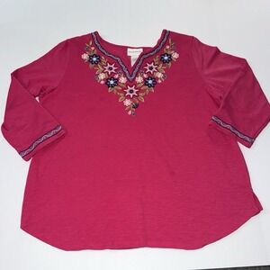 Alfred Dunner Top Large Pink Floral Embroidered - In Full Bloom