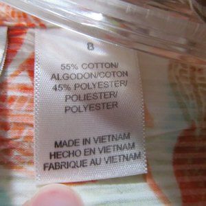 Alfred Dunner Top Shirt Blouse Short Sleeve Button Down Blue Green Orange Leaves Size 8