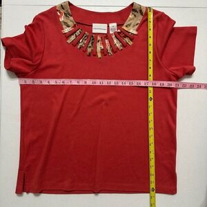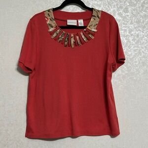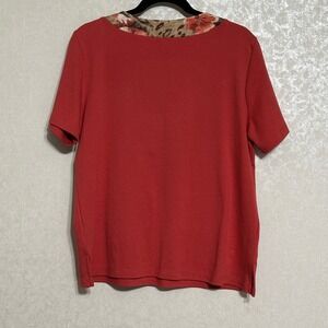 Alfred Dunner Top Tee Shirt Floral Neckline Accent Short Sleeve Casual Red M
