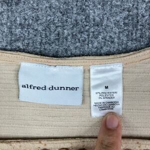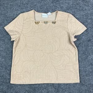 Alfred Dunner Top Womens M Beige Gold Embellished Beaded Neck Textured