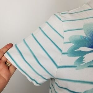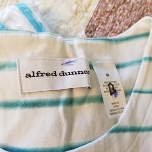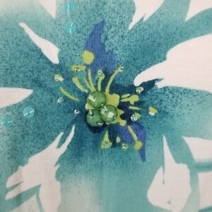Alfred Dunner striped green top with flowers (some flowers with beads), EUC Approx measurements laid flat Pit to pit 20" Length 24" Sleeves 7" 1896 Q