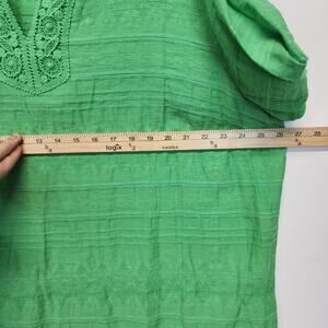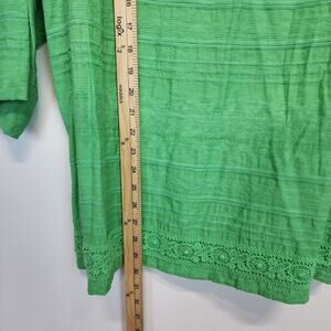 Alfred Dunner Tropic Zone Lace Trim Top Size 2X Green 3/4 Sleeve Flocked Mature