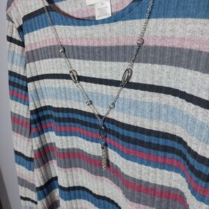 Alfred Dunner Tunic Top Sz XL Striped Attached Necklace Classic Versatile Cozy