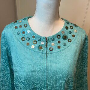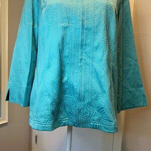 Alfred Dunner Turqoise Texture Fabric Beaded blazer, Size 14