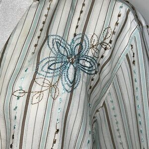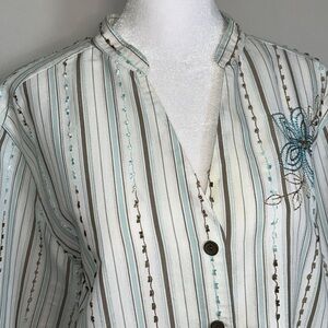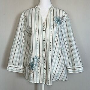 Alfred Dunner Turquoise & Brown Striped Top with Beaded Floral Accents Size 20