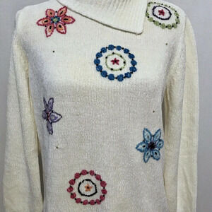 Excellent condition. Off-white turtleneck sweater for Women Size SP. Embroidery with embellishments, chenille, soft to touch, ribbed cuffs and bottom hem. Pictures are part of description.