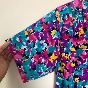 Alfred Dunner VTG bright floral short sleeve elastic waist blouse Plus Size 14