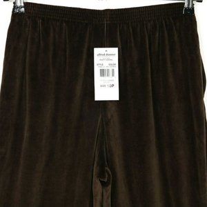 Alfred Dunner Party Animal Velour Pants Espresso Brown Stretch Elastic Waist