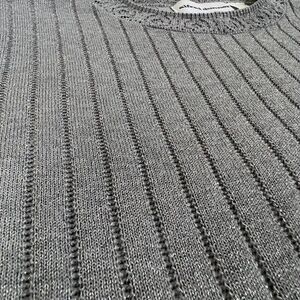 Alfred Dunner Vintage 90s Knit Grey Sliver Metallic Sweater Short Sleeve Shirt