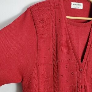 Alfred Dunner Vintage 90's Red Knit Short Sleeve Sweater Mock Cardigan Large