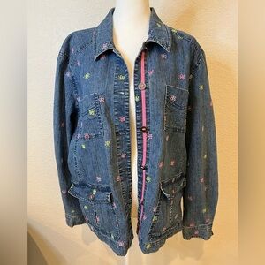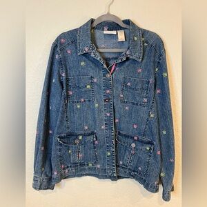 Alfred Dunner Vintage Denim Jacket Embroidered Boxy Fit Lightweight Size 8