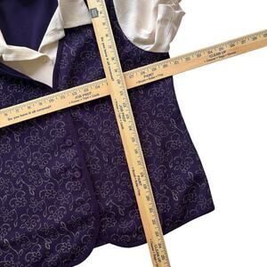 Alfred Dunner Vintage Floral Short Sleeve Vest Blouse Set Purple Cream 14P